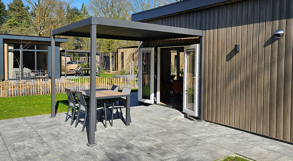 (de pergola kan lichtdoorlatend of waterdicht ingesteld worden)