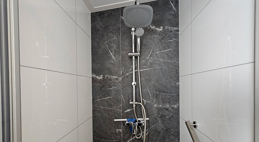 Inloopdouche met regendouche en handdouche en steunbeugel